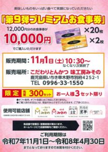 11月1日より販売開始✨第9弾プレミアムお食事券を販売いたします!